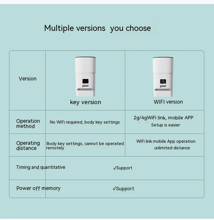 - Automatic Timed Feeding: Set regular mealtimes for your pet's health