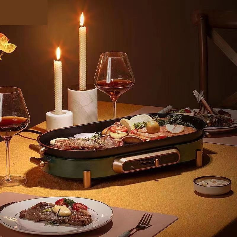 Elevate your home dining experience with this stylish, all-in-one multifunctional electric baking pan. Whether it's a sizzling BBQ night or a cosy hot pot session, this versatile appliance makes it effortless and fun. Grab yours today and turn every meal into a celebration!